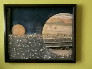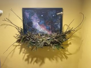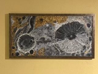 I formed of Peg of My HeART, LLC, in November of 2024 and am a newcomer in producing artwork that is not being given away as gifts. Have been married for 46 years and my husband and I are amateur astronomers that engage students through STEAM events. I have painted several telescope bases with astronomical themes as well as repainted basic black paint to optical tubes. I have been able to find fabrics as backgrounds for my many astronomical topics and deep sky objects which serve as the base to the piece as the motifs bleed through the artwork. Several pieces are a "tongue in cheek" or "astronomy with a twist" humor space concepts like, Whale Watching at the Sea of Tranquility, a Dolphin jumping over the Rings of Neptune and turning the Orion Nebula into a ballgown on a dress form. I started with commissioned color pencil portraits of pets on black paper and making shadow boxes. Now she has expanded the original concept to include boxes with multiple glass/acrylic panels to give 3, 4 and 5 layers to the subject matter. Simple shadow boxes of night sky, barracuda under the sea, beach side, birds on shoreline, soon turned into an 8' x 10" box with 5-D view of the April 8th, 2024 Total Solar Eclipse, a 3-D 14" x 16" shadow box of A Secret Garden Trellised view and a 14" x 16" 3-D of Da Vinci's Venusian Man sketch. I repurpose frames whenever possible and oftentimes tie it into the overall work. I have even fabric wrapped frames to feature the object of the artwork.